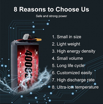 উচ্চ-ক্ষমতার লাইপো ব্যাটারির সুবিধাগুলির মধ্যে রয়েছে:
