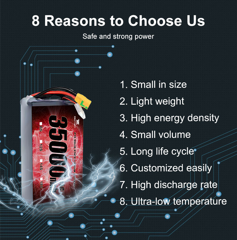 বর্ধিত জীবনকাল:কঠিন ইলেক্ট্রোলাইটগুলির স্থায়িত্ব এবং পাশের প্রতিক্রিয়াগুলির হ্রাস হওয়া ঝুঁকিটি শক্ত রাষ্ট্রীয় লিথিয়াম ব্যাটারির জন্য দীর্ঘতর জীবনকাল অবদান রাখতে পারে। এই বর্ধিত স্থায়িত্বের ফলে ব্যাটারিগুলি হতে পারে যা তাদের বেশি সংখ্যক চার্জ-স্রাব চক্রের উপর তাদের ক্ষমতা বজায় রাখে।